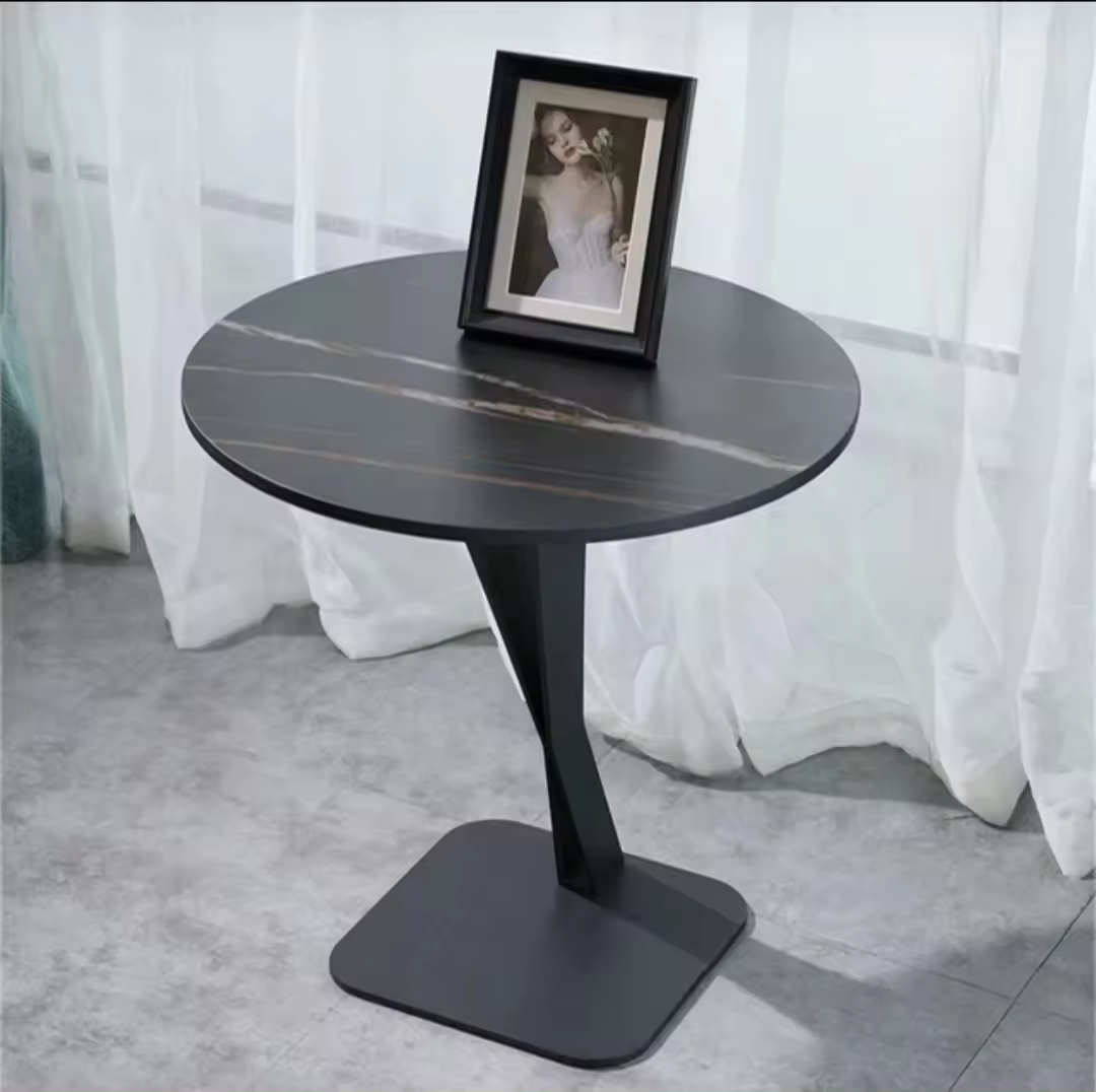 Modern luxury small apartment rock plate side table Italian brief sand carbon steel live room square new design side table
