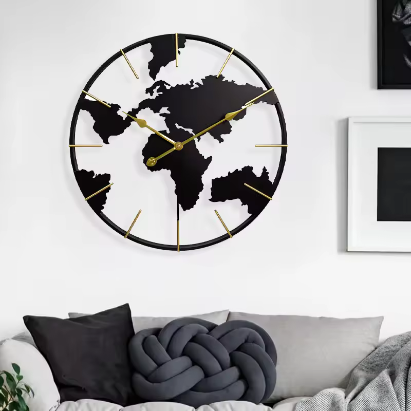 Promotional Simple World Map Creative Clock Artistic Minimalist Metal Clock on Sale